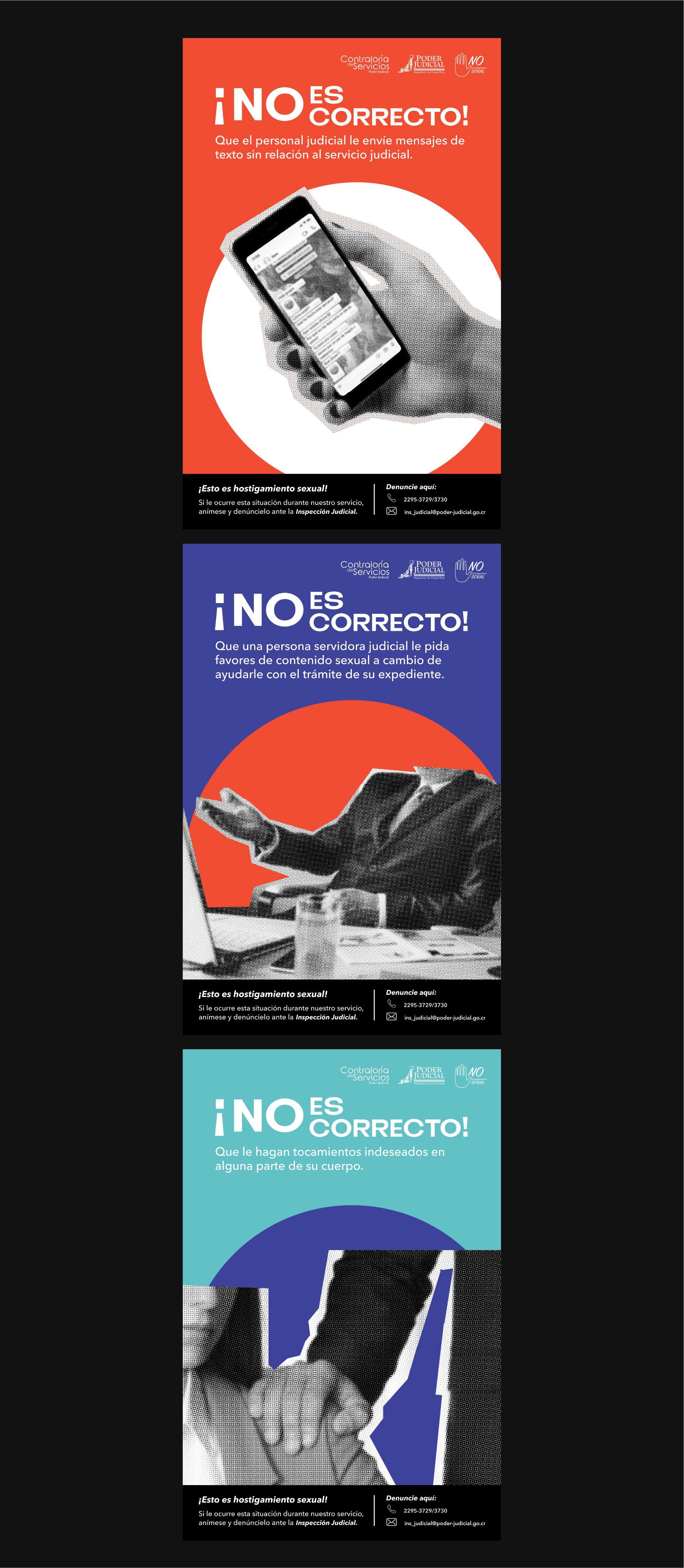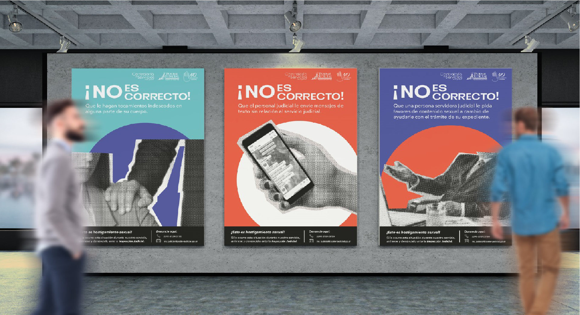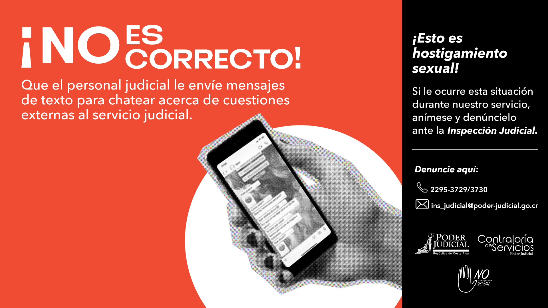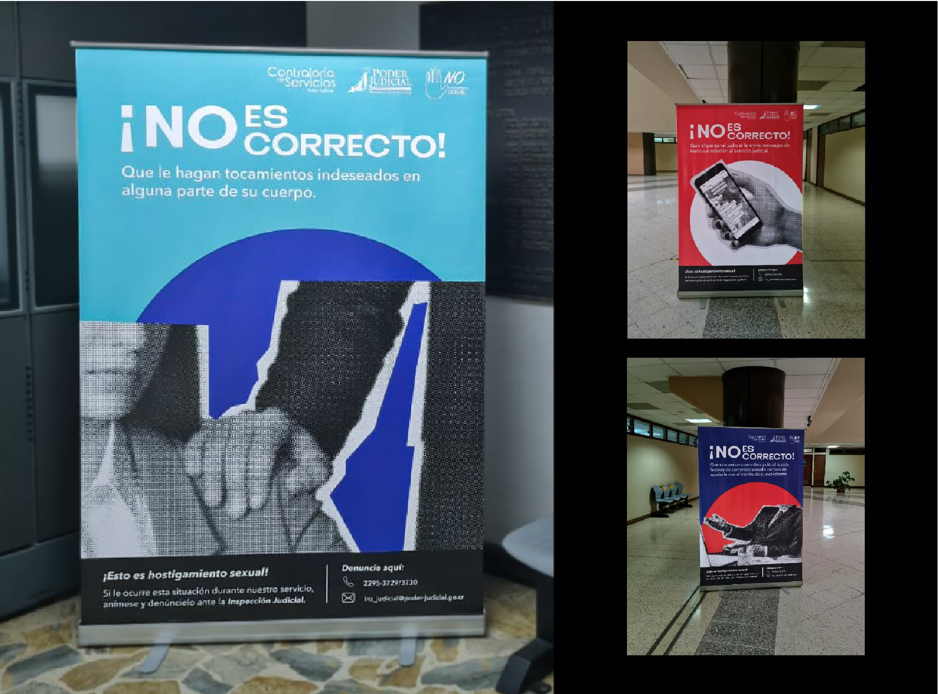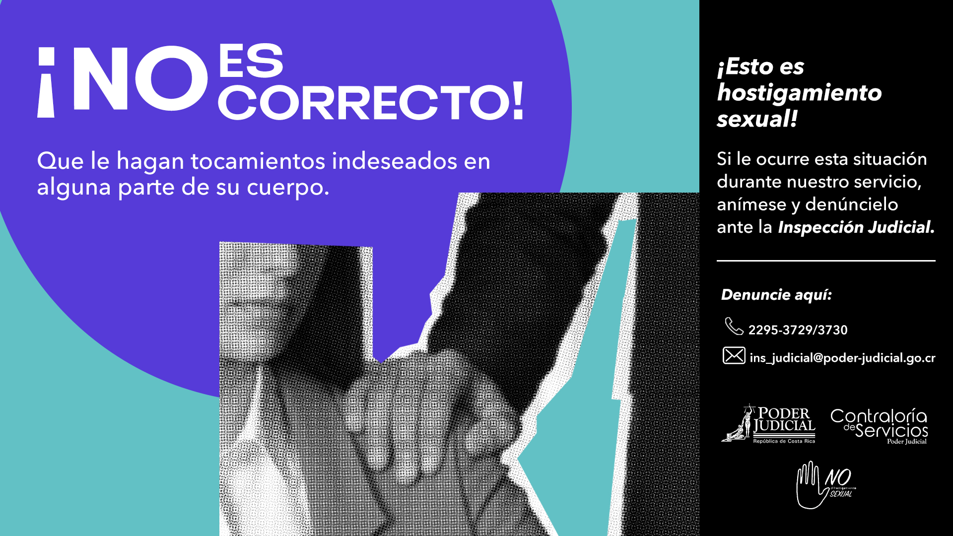El hostigamiento y acoso sexual es una práctica no tolerada por esta institución, para ello se hacen esfuerzos en erradicar este tipo de situaciones que podrían suceder en la interacción entre personal judicial y las personas usuarias. Uno de estos esfuerzos se enfocó en una campaña informativa que empatice con las víctimas de hostigamiento y acoso sexual, oriéntandoles y animándoles a denunciar sin que tengan temor a represalias en su contra.